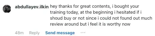 "At first I was very skeptical about the course and what got me to buy it is the fact that there's a money back guarantee. When I looked at the headlines of the course I was pretty sure I'm going to spend 5 min on it and ask for my money back.